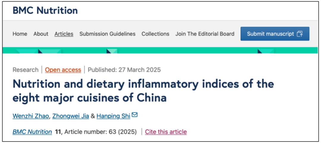 ①Nutrition and dietary inflammatory indices of the eight major cuisines of China. BMC Nutr 11, 63 (2025).