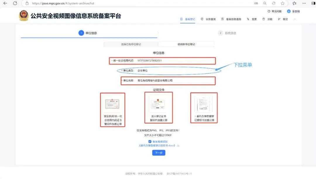 (一)线上备案。通过互联网登录“公共安全视频图像信息系统备案平台”(以下简称“平台”,网址:http://psvs.mps.gov.cn)进行注册,填写相关信息,并上传加盖单位公章的委托办理备案授权书。