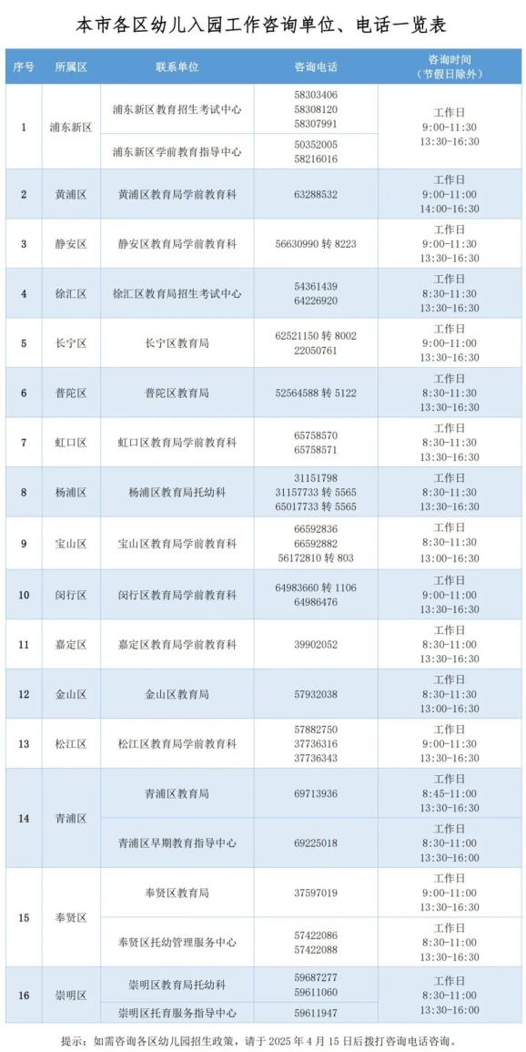 4月10日,上海市教委公布《关于做好2025年本市学前教育阶段适龄幼儿入园工作的通知》。今年上海学前教育阶段适龄幼儿入园工作政策与往年保持总体一致,坚持统一部署、规范程序和因地制宜的原则,为广大适龄幼儿入园提供更便捷、准确、有效的服务。