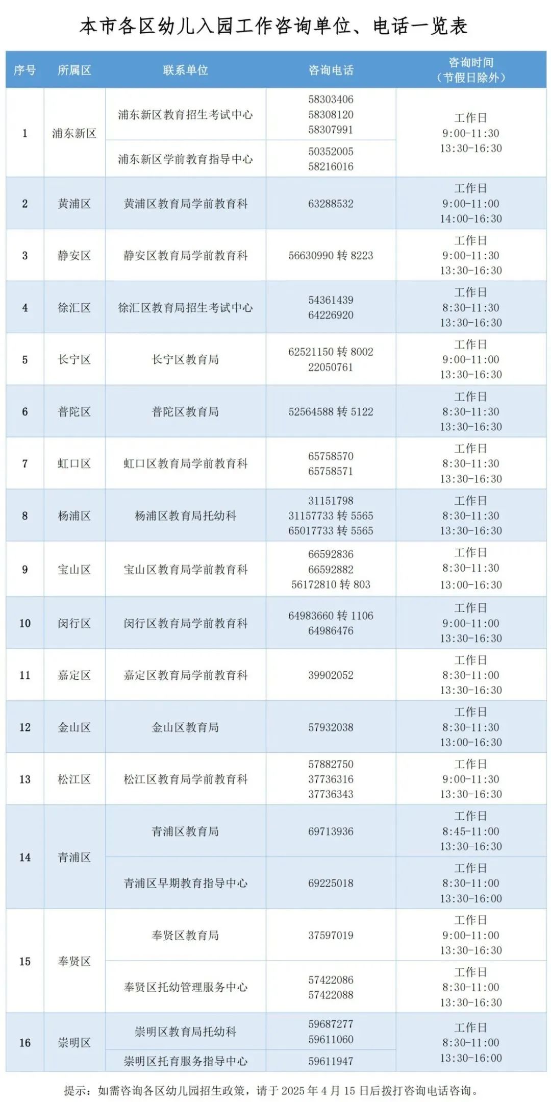 4月10日,上海市教委公布《关于做好2025年本市学前教育阶段适龄幼儿入园工作的通知》。今年上海学前教育阶段适龄幼儿入园工作政策与往年保持总体一致,坚持统一部署、规范程序和因地制宜的原则,为广大适龄幼儿入园提供更便捷、准确、有效的服务。
