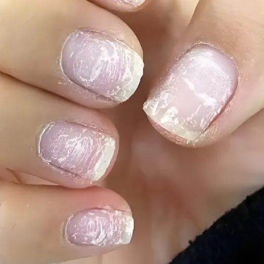 指甲变薄变脆:频繁打磨指甲表面会导致指甲变薄,容易断裂。