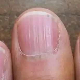 指甲出现竖纹:可能是营养不良或衰老的表现。不过,如果竖纹很明显、很深,甚至发展成纵向的裂隙,就要予以关注,可能是甲纵沟。甲纵沟最典型症状就是甲板中央有一纵嵴,常见于线状苔藓、扁平苔藓、甲下疣、甲营养不良,也可发生于X线、化学或机械性的甲板损害。