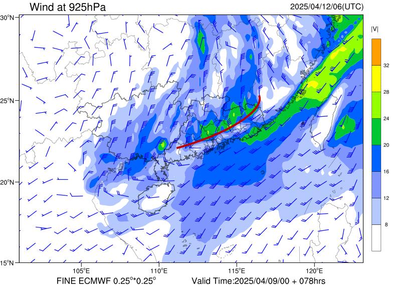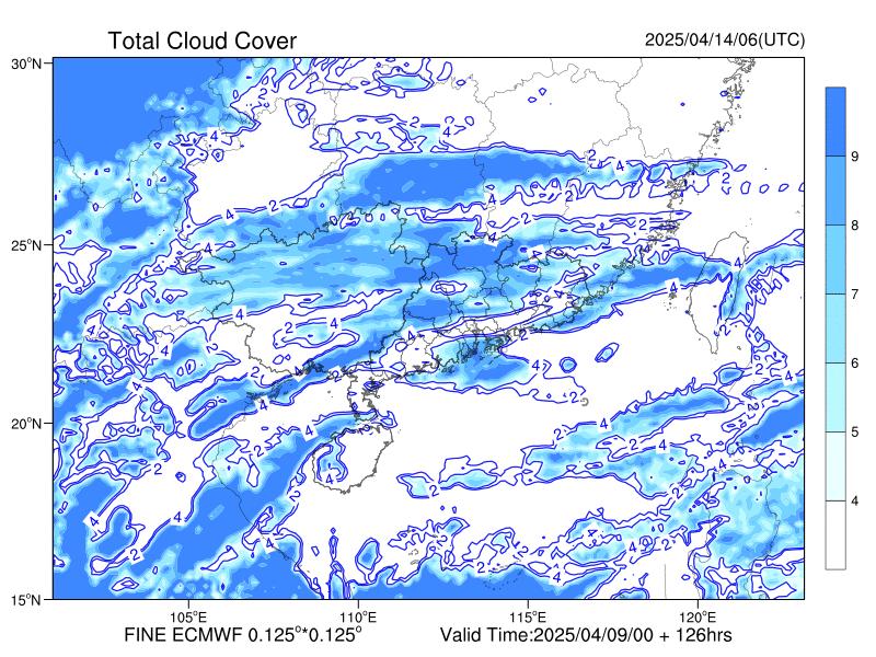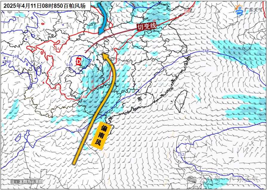 预计10日到11日白天,偏南气流加大,广东处于辐散气流中,大部以多云天气为主,韶关、清远和肇庆有分散雷阵雨,气温继续上升,能量持续累加。