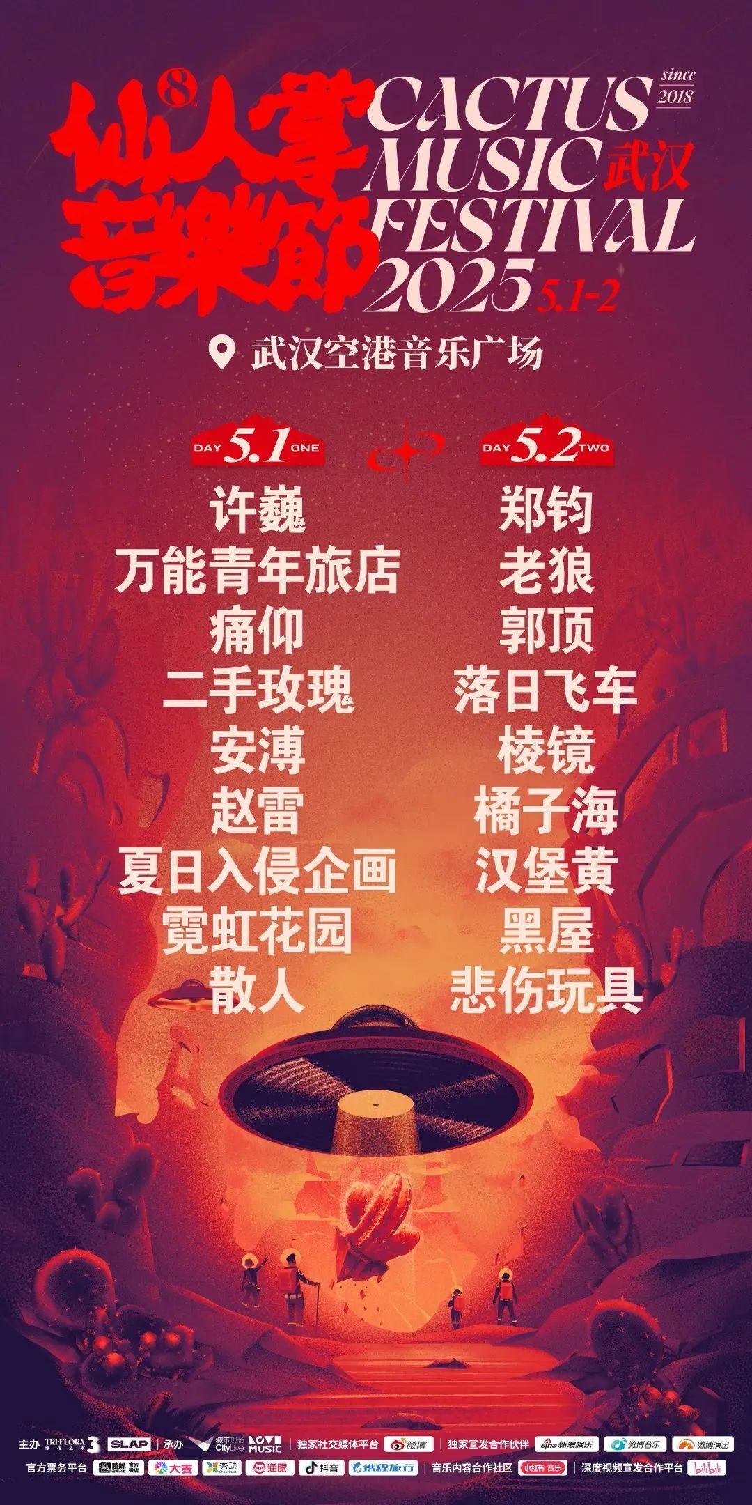 今年五一,「仙人掌音乐节」把8周年呈现放在武汉,这也是它首次登陆武汉,阵容当然不可小觑。既有摇滚老炮,也有独立先锋,18组音乐人带你从八十年代跨越至今。