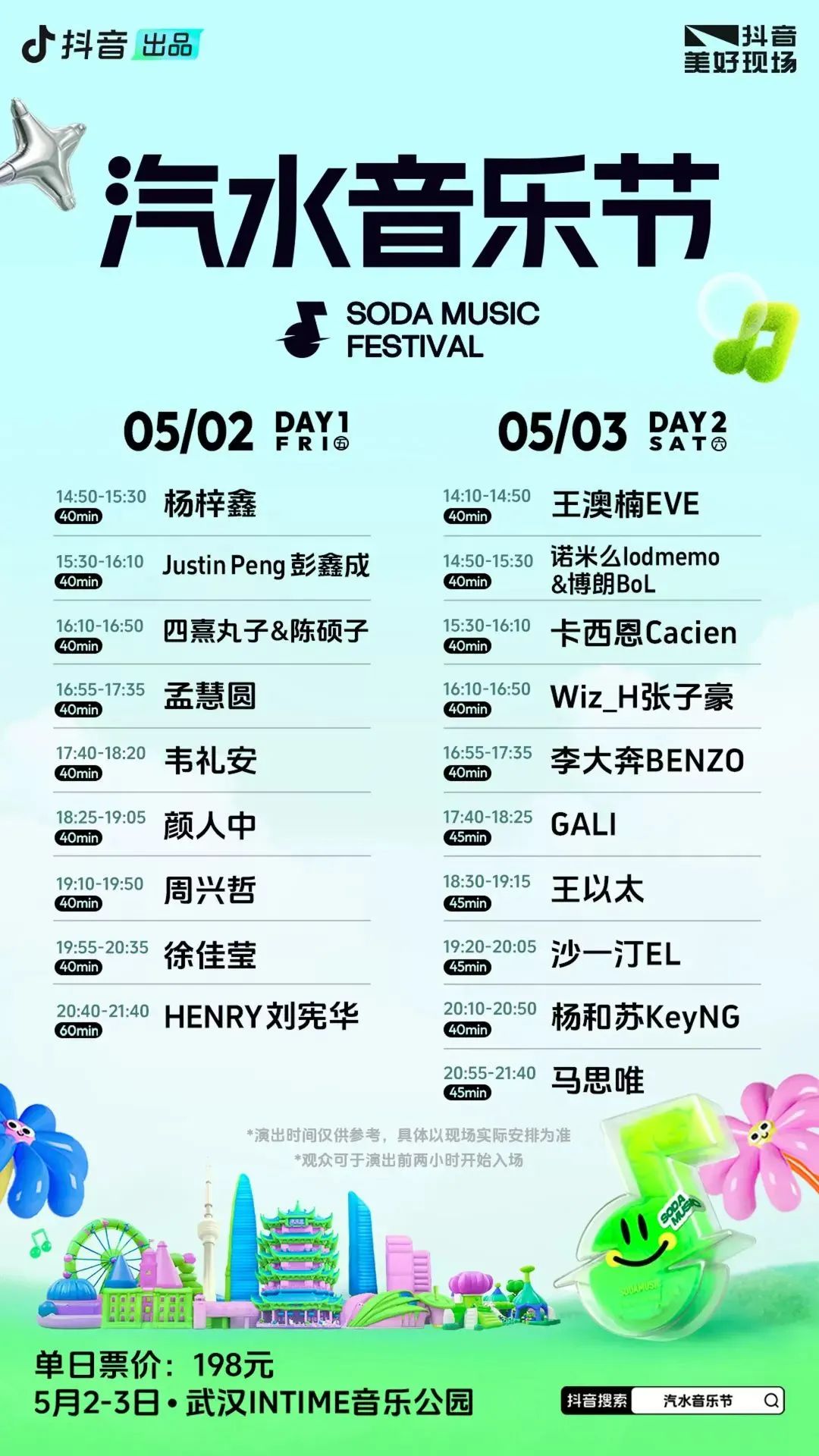 横跨古典与流行的“全能艺术家”HENRY刘宪华、中国说唱TOP厂牌主理人马思唯压轴,还有金曲奖常客徐佳莹、“金曲制造机”韦礼安、声线极具辨识度的颜人中、当过说唱节目导师的杨和苏KeyNG……都是年轻人爱的歌手!配套服务也好,设置沙发区可自带充气沙发躺下,免费且不限量供给饮用水等。演出票即将二开,祝大家玩得开心!❤️
