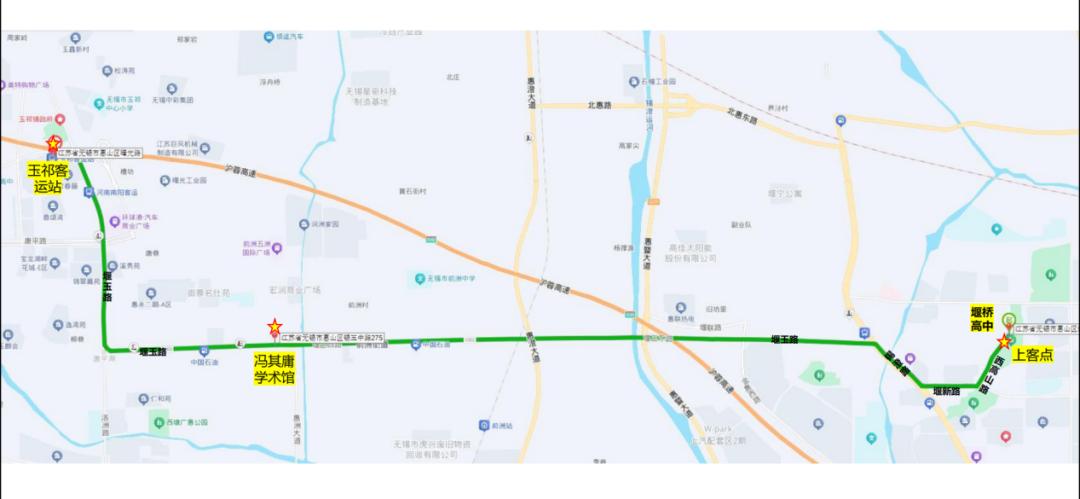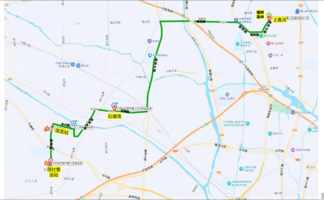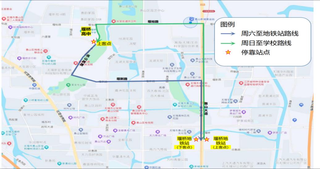 2、站点设置:堰桥高中校园定制站点、政和大道(惠山大道)公交车站。