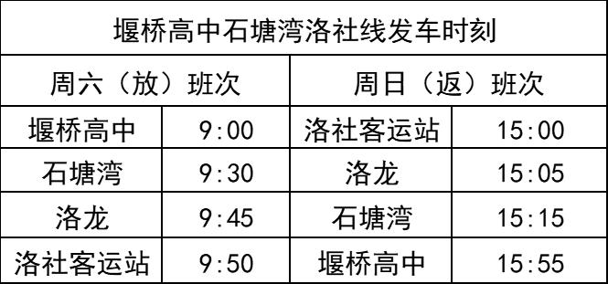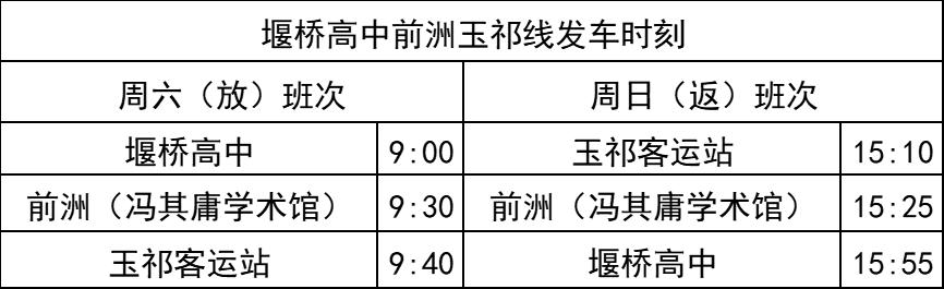 周六堰桥高中发车:高一8:45、高二9:55、高三16:55
