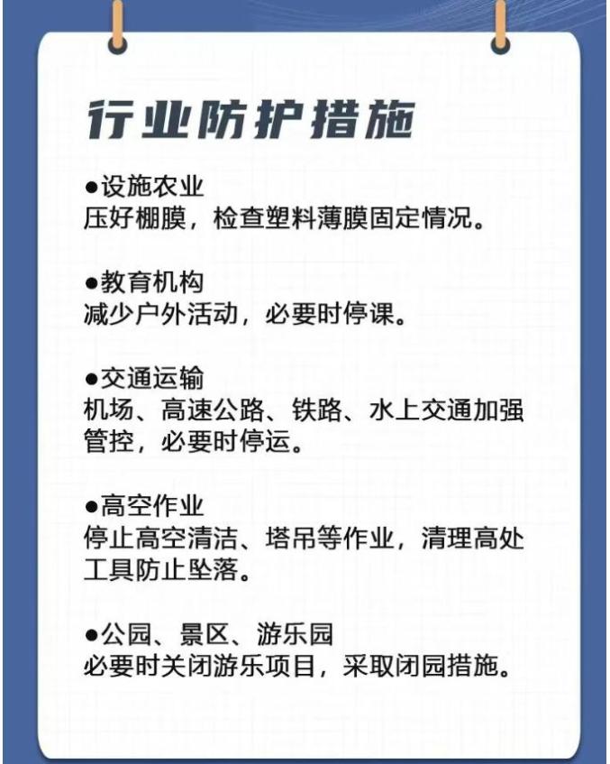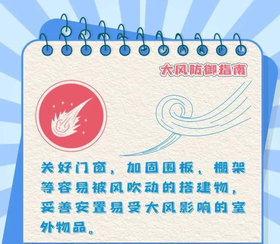 2.停止露天活动和高空等户外危险作业,危险地带人员和危房居民尽量转到避风场所避风;