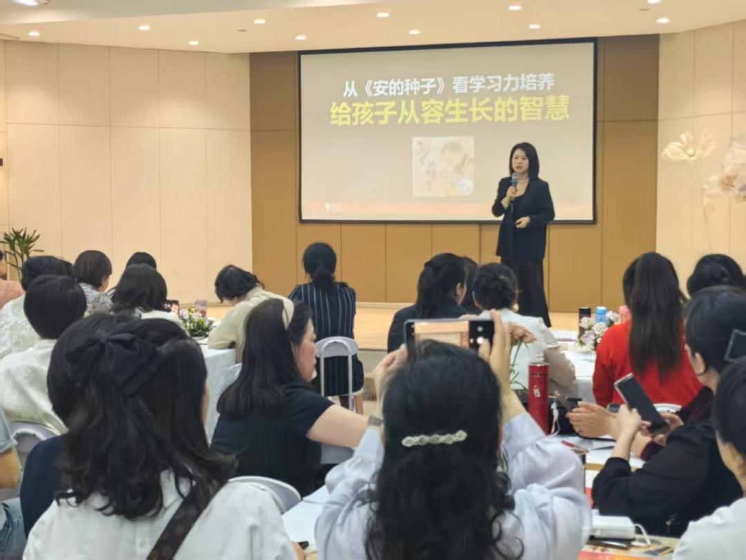 培训由家庭教育指导师邵思思担任主讲,她以绘本《安的种子》为切入点,通过生动的案例和深入浅出的讲解,深入探讨了在焦虑裹挟的社会,父母如何学会等待,静待花开,引导在场讲师思考教育的本质和孩子成长的规律,倡导给予孩子从容生长的智慧。邵思思老师富有哲学智慧的授课,引发了在场家庭教育工作者对尊重生命时序理念的集体共鸣。