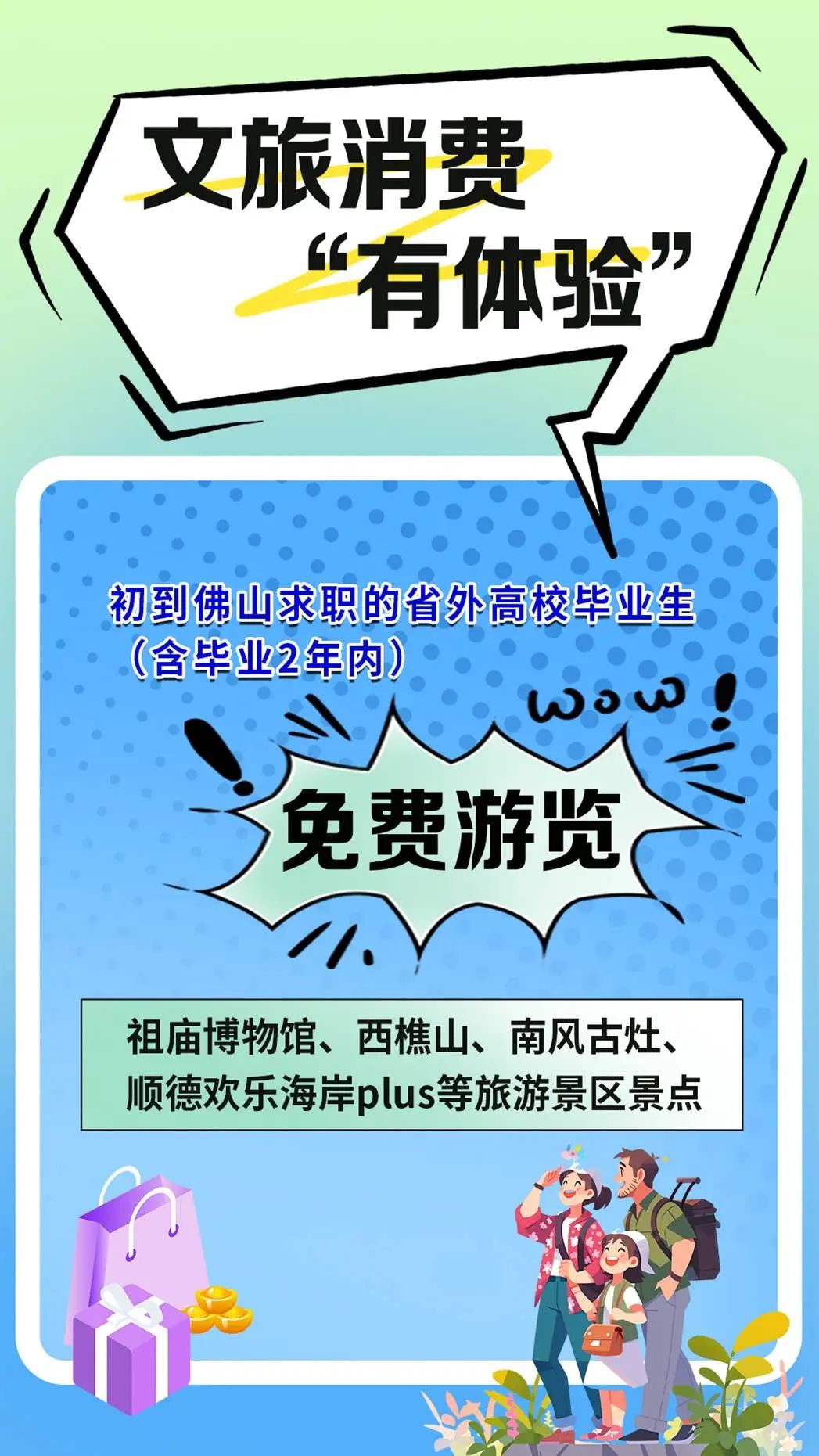 文旅消费“有体验”:初到佛山求职的外省高校毕业生,可免费游览祖庙博物馆、西樵山、南风古灶、顺峰山公园、顺德欢乐海岸plus等旅游景区、文化场所。