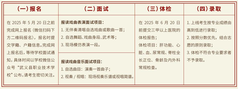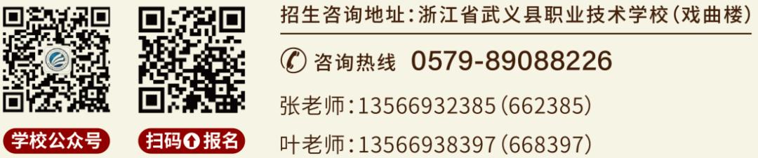 武义县婺剧艺术传承中心成立于2025年1月17日,2025年与学校开展联合办学定向培养戏曲人才。培养期间,学生可享受义务教育阶段至中职阶段学费全免政策;在政策允许范围内,为学生开辟高职(大专)学历晋升通道。