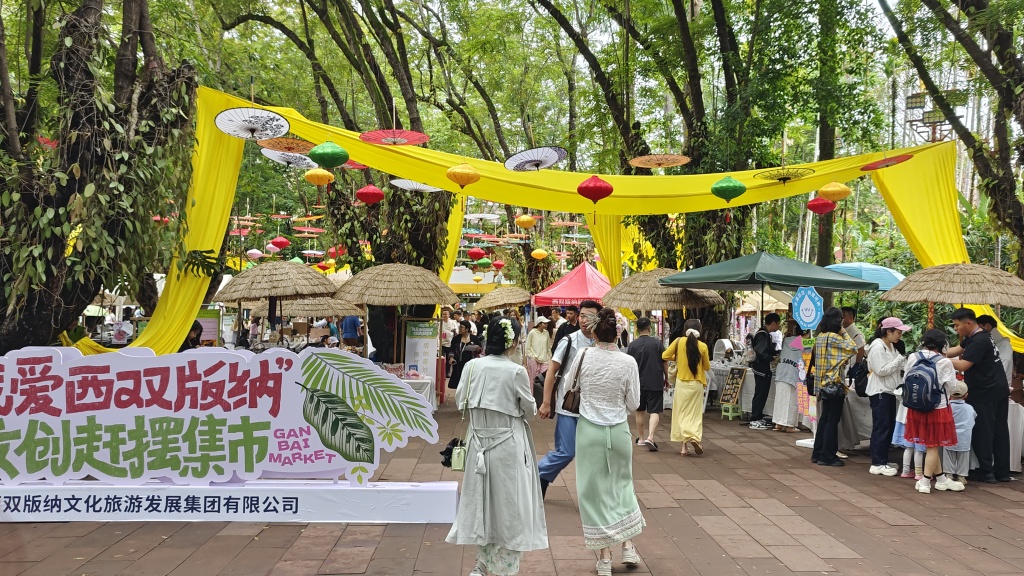 赶摆类似游客们熟悉的市集,澎湃新闻从现场了解到,“我爱西双版纳”文创赶摆集市以西双版纳本地文化为核心,打造了不一样的文创集市。