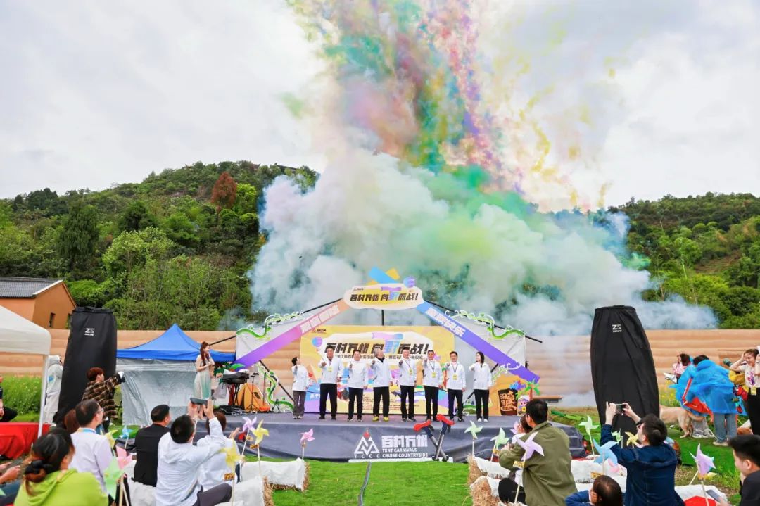 在一片充满奇幻氛围的场地中,屏幕上光怪陆离的倒计时闪烁跳动。领导们手持魔法棒指向主帐。刹那间,彩烟腾空,童话世界轰然洞开,开帐仪式就此正式启动。