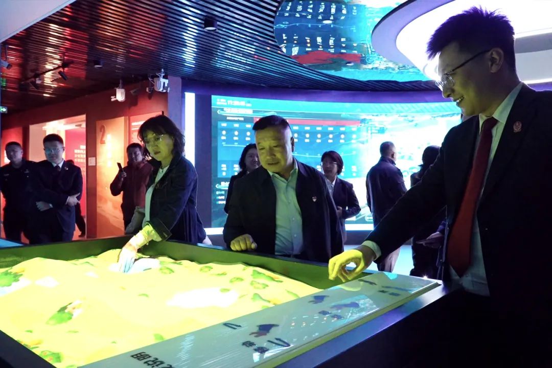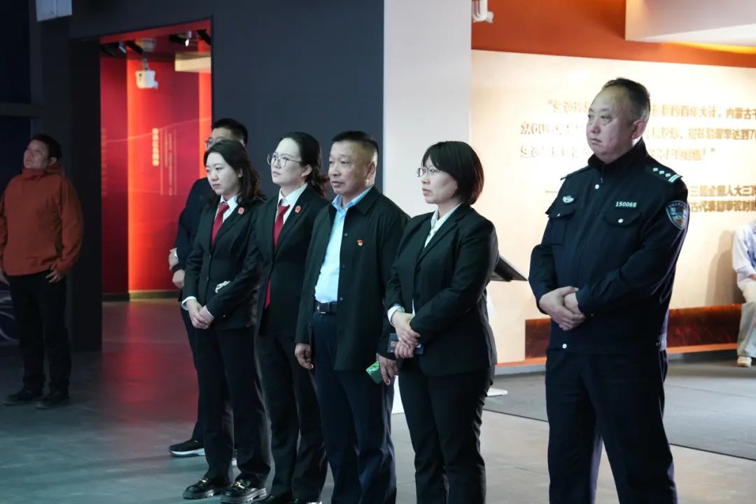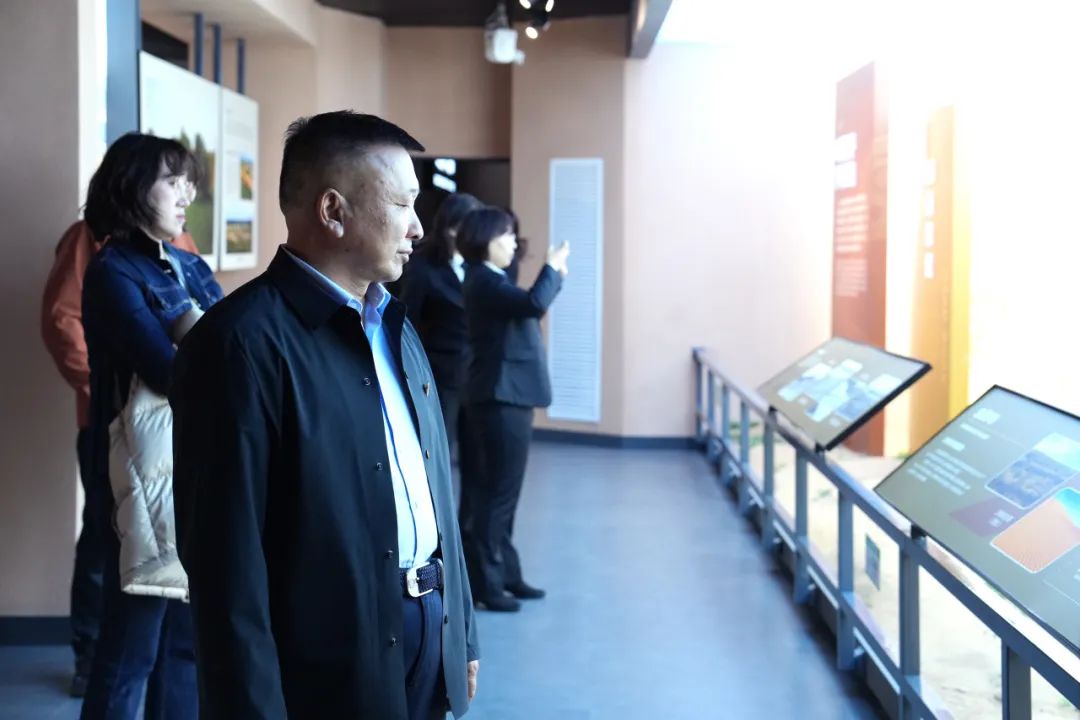 在讲解员引导下,杨孟克院长一行依次参观了“生态变迁”“治沙奇迹”“绿色发展”三大主题展区。通过历史影像、沙盘模型和实物展陈,深入了解乌审旗人民数十年来通过“草方格固沙”“乔灌草结合”等科学治沙技术,将毛乌素沙地荒漠化率从70%降至今日不足3%的壮举。法院干警驻足于“全国治沙英雄”宝日勒岱等先进人物事迹展板前,深刻体悟“绿水青山就是金山银山”的实践内涵。