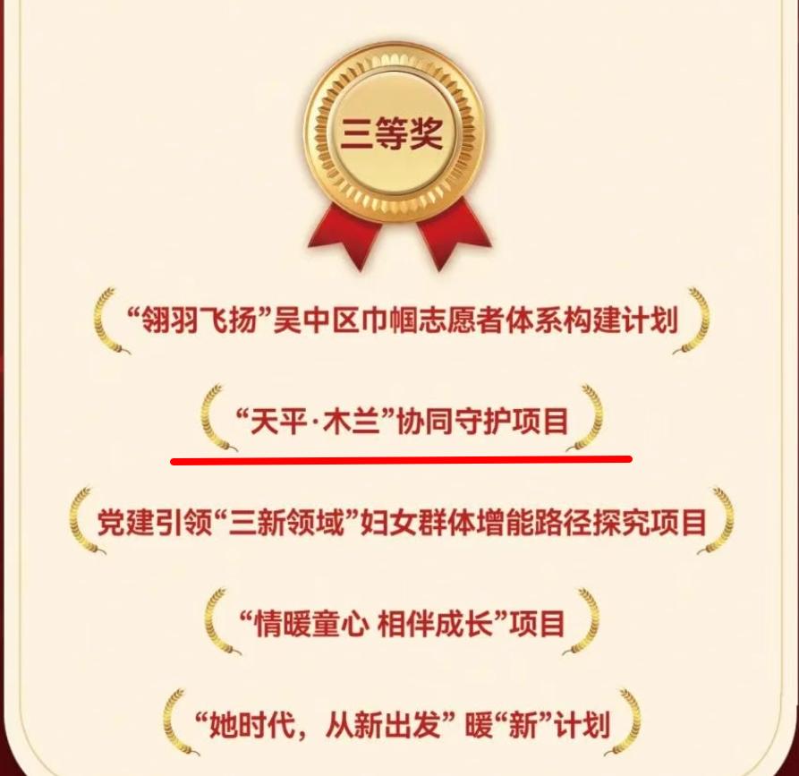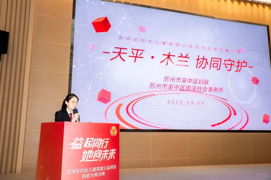 近日,由吴中法院妇联承办,联合区妇联共创的“天平·木兰”协同守护项目获得2025年“益起同行 她向未来”吴中区妇女儿童家庭公益项目创意大赛三等奖。