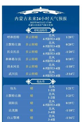 据呼和浩特市气象台最新消息: