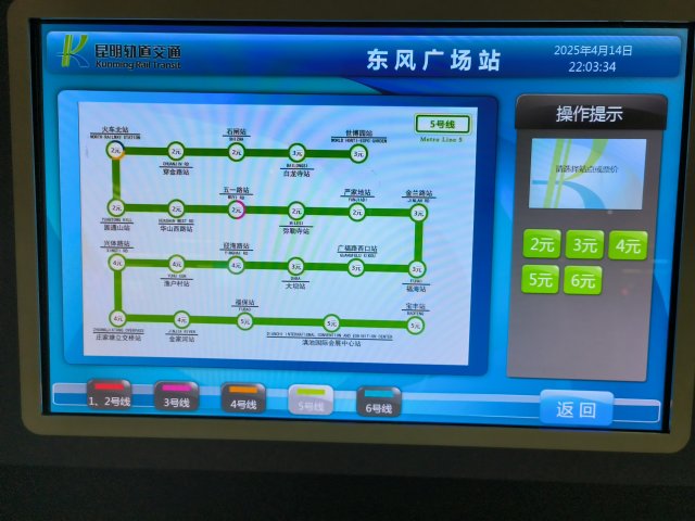 5元可坐到福保站、滇池国际会展中心站、宝丰站。