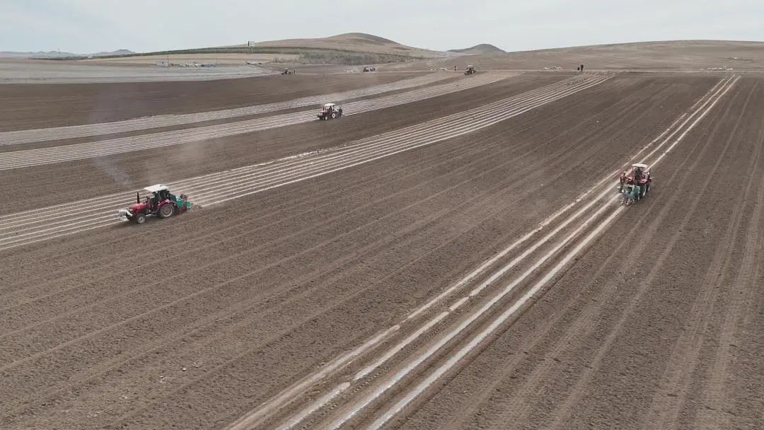 与此同时,巴彦塔拉苏木的田间地头,远远就传来机器的轰鸣声,7台装有北斗导航系统的大马力机车牵引着一体化精量播种机正在广阔的田野里来回穿梭,随着播种机缓缓前进,滴灌带铺设、播种、覆膜、培土等工序一体完成,一排排纵横交错的田埂犹如一行行五线谱。种植户王艳杰去年种植了1300亩谷子,每亩产量达到了800多斤,收入颇丰。今年,她决定扩大种植谷子的规模,这几天正与专业团队到田间进行播种,希望通过科学种植和管理,再迎丰收。