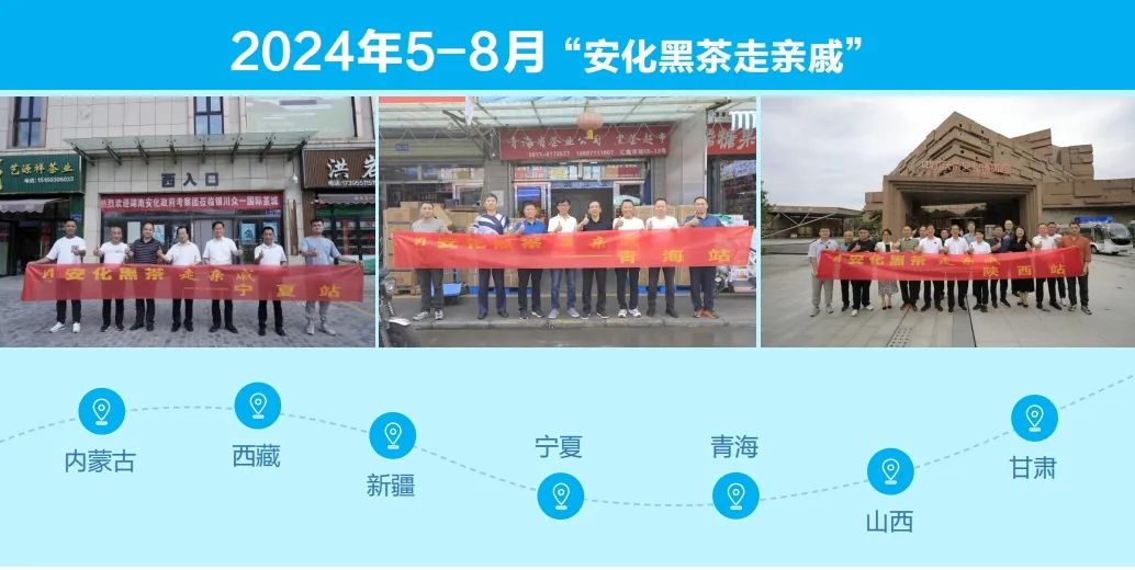 2024年5-8月,安化县策划实施“安化黑茶走亲戚”活动。安化黑茶产业紧扣“一带一路”国家发展战略,2024年5-8月,策划实施了“安化黑茶走亲戚”活动。由县级领导带队,组织茶企代表,到云南普洱、四川雅安、湖北赤壁、广西梧州、陕西咸阳等黑茶主产区取经,了解产业发展现状、学习先进经验、谋划跨界合作;到内蒙古、西藏、新疆、宁夏、青海、山西、甘肃等传统销区走访市场,了解当地多样化市场活动和消费趋势,与当地商协会、经销商等探讨产业转型方向路径,进一步加强黑茶产销区的交流与合作。