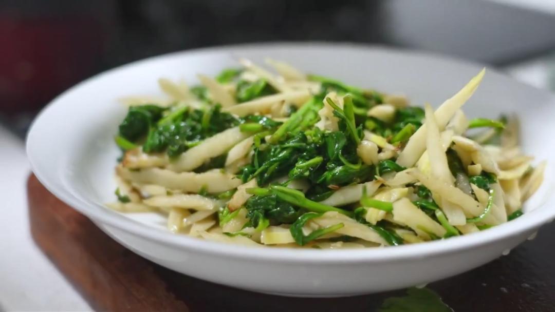 4、春分·平衡之道春分,是一年中昼夜均等、寒温各半的时期。所谓“春分者,阴阳相半也。”此时,饮食宜平和,忌大寒大热,忌过于肥腻。一碗笋丝枸杞头,清肝胃热,消痰利水,解除油腻。