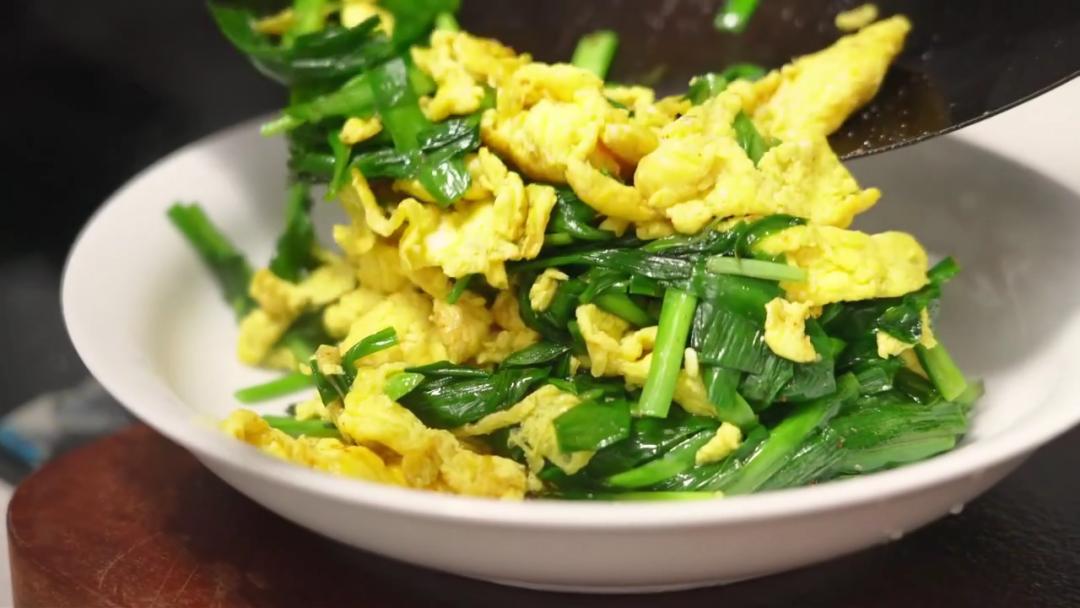 菜谱:【韭菜炒鸡蛋】新鲜韭菜100克,鸡蛋2个,将韭菜洗净切碎,鸡蛋去壳搅匀,加油、盐炒熟,佐膳服食。