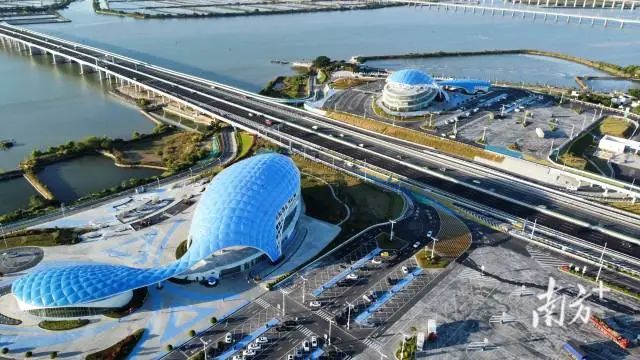 进入汕尾,“广东最美服务区”不得不打卡,从高空俯瞰长沙湾服务区,其“蓝鲸天幕”外观仿若巨型鲸鱼在长沙湾破浪前行。自2024年8月开通以来,长沙湾服务区便吸睛无数。
