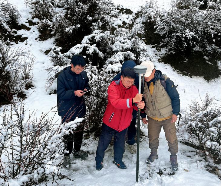 测绘人员顶风冒雪开展中东铁路遗产监测。