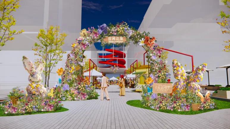 前滩花集效果图花展不仅是花卉盛宴,更是艺术与自然、人文、生活的深度交融。在体验经济的驱动下,本次花展突破了观赏边界,积极探索与文商旅的跨界合作,致力构建“花展+文商旅”产业新生态。