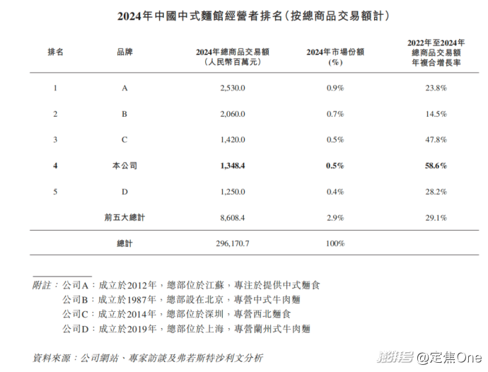 这场战事也在倒逼行业进化。数据显示,中式面馆市场高度分散,TOP5品牌市场份额不足3%,整合空间大。李牧预测,行业五年内可能出现整合,他看好既能借加盟快速圈地、又能用供应链守住利润、且资金储备充足的玩家。