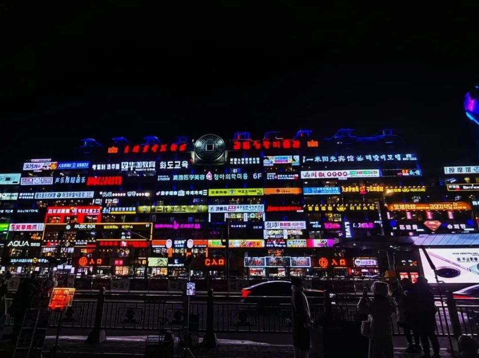白天的延吉,用咖啡的香醇与恐龙文化的厚重,为人们编织了一场诗意的梦。当夜幕降临,漫步在布尔哈通河畔,感受沿岸夜景的霓虹闪烁;可以到延大网红“弹幕墙”前打卡拍照,感受青春与潮流的碰撞;亦或走进延吉不夜城美食街体验“深夜食堂”的治愈,当然也可钻进大学城胡同的民谣酒吧,享受边陲小城的微醺时光。