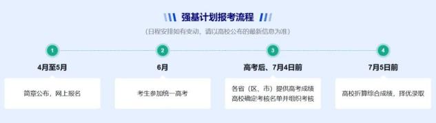 一是高校依据考生的高考成绩,按在各省(区、市)强基计划招生名额的一定倍数确定参加高校考核的考生名单。考生参加统一高考和高校考核后,高校将考生高考成绩、高校综合考核结果及综合素质评价情况等按比例合成考生综合成绩(其中高考成绩所占比例不得低于85%),根据考生填报志愿,按综合成绩由高到低顺序录取。