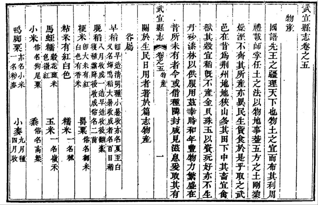 从古至今都在种植的粮食作物从清嘉庆十三年《武宣县志》的记载可以看出,明清时期,武宣已有种植早稻、晚稻传统。早稻即早造,清明种,小暑收;亦名夏至白,又名蝉鸣稻,大暑收成者,名百日稻。晚稻,八月收成一造早造,收后翻槁复种,霜降后收成,俗名二苗。清代,武宣境内种植的谷物杂粮主要有粳米(即大米,有红、白色,有香米)、粘米(有红、白色)、糯米、马蛭糯(谷花斑,米色微红)、玉米(一名岭禾)、小米(俗名狗尾粟)、鸭脚粟、大麦、小麦、荞麦(三角麦)、黍(俗名高粱)、豆类(有黑黄绿三种)、番薯、芋头等。