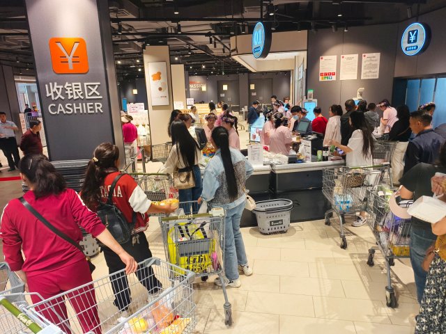 4月17日,永辉超市在昆明首个“学习胖东来”模式的标杆门店在海乐世界开业。开屏新闻记者走访发现,现场人头攒动,十分热闹。该店店长卢山表示,从早上开门到下午都呈现客流持续增长的态势,为应对可能出现的大客流,超市管理方还制定了限流方案,但当天客流没有触及限流。