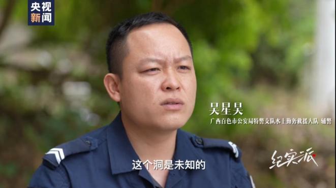 广西百色市公安局特警支队水上勤务救援大队辅警吴星昊:你不知道里面的环境构造是什么样,最大的难点是这个洞是未知的。水下环境复杂