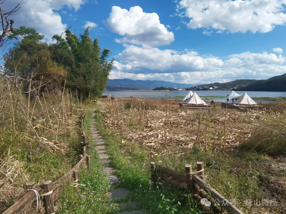 采访当天,我们在水边的露营地遇到了来自黑龙江的游客韩建军和江苏游客陈安生,他们对苍鹭谷的宁静安谧赞不绝口。“这里环境安静,空气清新,晚上可以观赏星星,早上起来拍摄日出,还有几十种不知名的鸟儿,叽叽喳喳地欢唱,非常美丽。”而在一旁的马术场上,澳大利亚游客丹尼尔在教练的指导下第一次独自驾驭马匹,尽情体验着驰骋的快意。他用不太流利的中文告诉我们,自己是从朋友的视频中得知苍鹭谷这个地方,在巍山古城住了一夜之后,一大早就独自前来苍鹭谷体验马术。“巍山是个神奇的地方,这里真的给我带来了不一样的体验!”