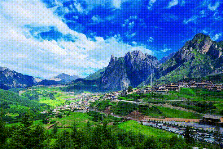 扎尕那。图源:甘南文旅微信公众号在达日观景台,看炊烟从藏寨的木屋顶升起,云雾如哈达般拂过“石匣子”的巍峨群峰。
