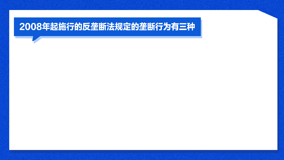 2008年起施行的反垄断法规定的垄断行为主要有三种:垄断协议、滥用市场支配地位、经营者集中。