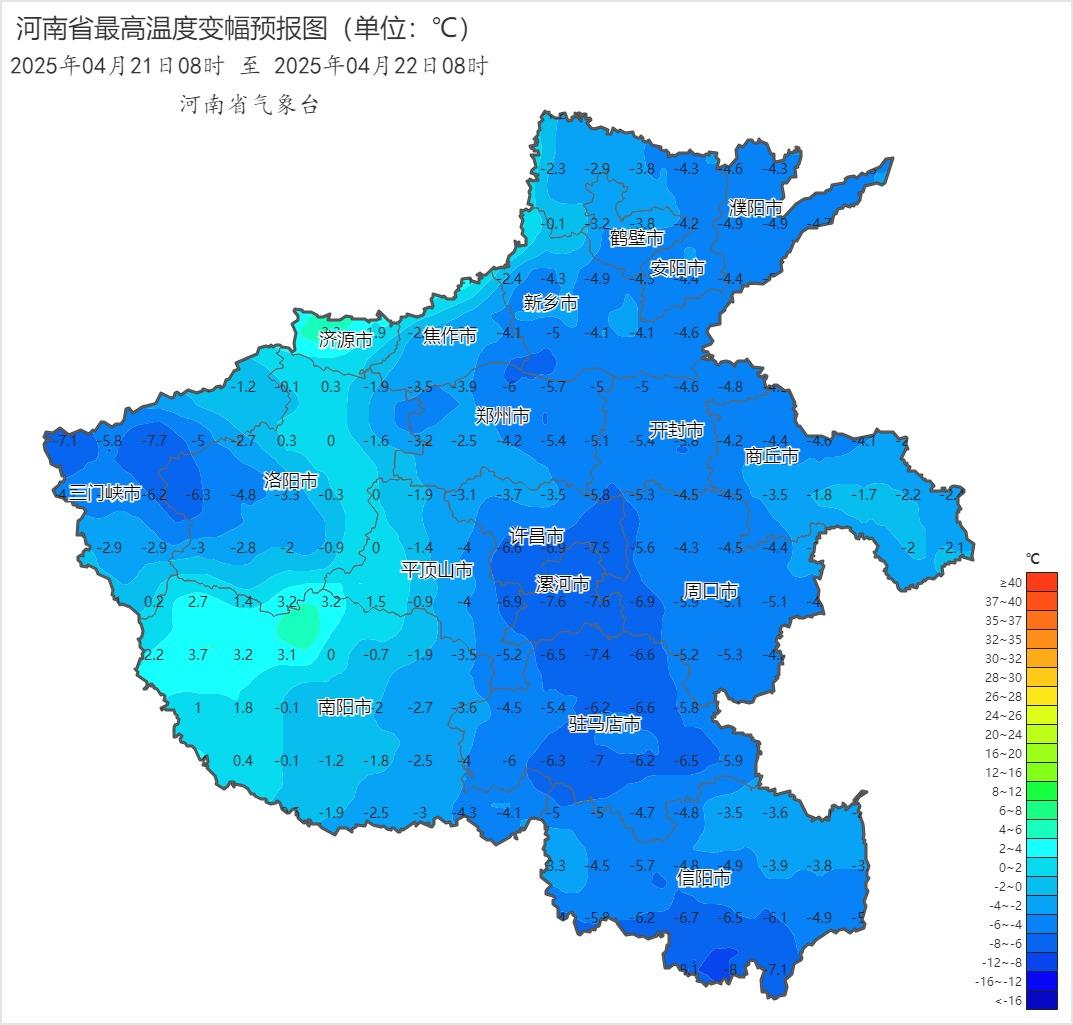 21日下午到夜里,全省风力增大,全省自西向东转西北风4级左右,阵风6级左右,中西部、西北部阵风8到10级,注意关好门窗,妥善安置室外搁置物,以免高空坠物伤人。受冷空气接连影响,预计今明两天全省大部气温先升后降,由于气温波动起伏较大,尤其是西部、南部以及许昌、漯河等地,21日气温降幅达6度以上,提醒大家合理调整着装,以免感冒。
