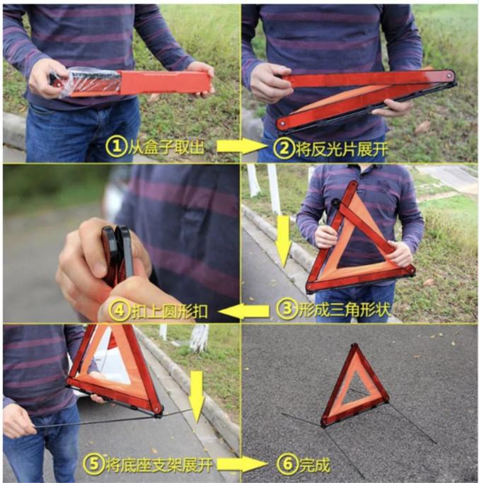这个过程要注意,尤其是在冬天,天气冷,塑料很脆,在展开的时候,要对准再用力,否则这种塑料的三角牌都很容易折断,卡扣也容易被别断,尤其是有很多劣质材料的三角牌。究竟要放在车后多少米?