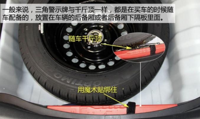 一般放置在车辆的后备厢或者后备厢下隔板里面。建议广大车主在用完之后回归原位,避免下次需要用到时找不到。