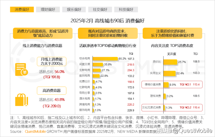 1.2 高线城市90后消费品质与精打细算兼顾,把钱花在刀刃上,同时愿意随“心”消费,为情绪价值、文化体验买单