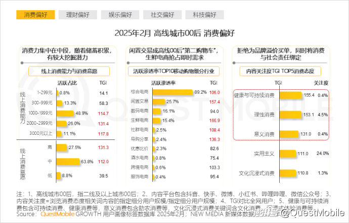 1.2 高线城市00后追求理性务实的消费方式,热衷二手交易,消费决策从功能满足转向社会价值认同