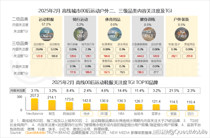 2.2 高线城市00后是“户外潮流引领者”,偏好兼具功能性与潮流感的运动鞋服及细分领域装备,新兴国货与国际品牌共同占据心智