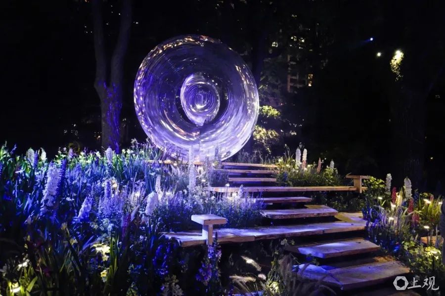 “鸢尾咖啡”花园(白天)夜间的太平湖公园的确是另一番景象。在光影变化下,花组给人全新的感受。黄浦在太平湖南侧还推出了夜间《光之交响》光影秀,光影、音乐、香氛,再配上花组,构筑了视觉、听觉、嗅觉的三维沉浸式空间,形成“白天赏花,晚上看灯”的观赏体验。