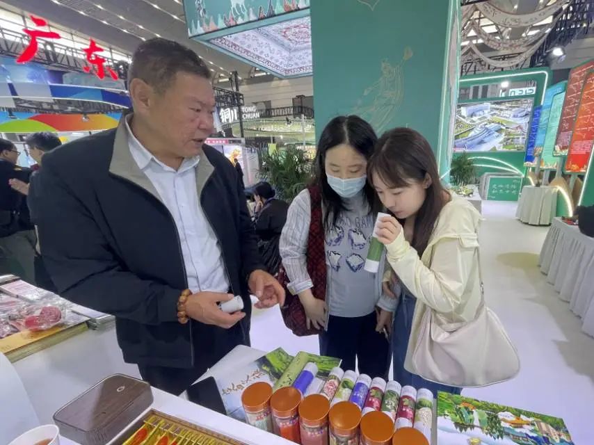 展会现场,人潮涌动,热闹非凡。定西市文体旅游局通过图文并茂的宣传资料、生动鲜活的现场讲解,向与会嘉宾和游客展示了定西厚重的历史文化底蕴、丰富的旅游资源和独具特色的产品线路。展台上,精心陈列的定西特色非遗文创产品,如洮砚、洮香、彩陶、剪纸、扎染、钩编、当归、黄芪、党参等50件产品吸引了众多消费者纷纷驻足、品鉴、购买,让定西文旅名片愈发闪亮。