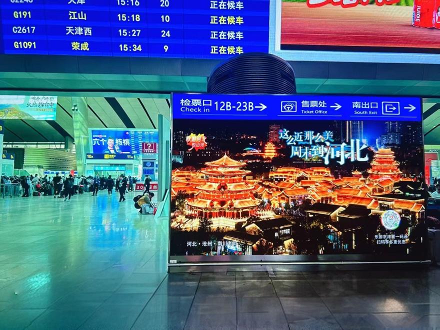 北京南站的“这么近,那么美,周末到河北”宣传海报。河北省文化和旅游厅供图