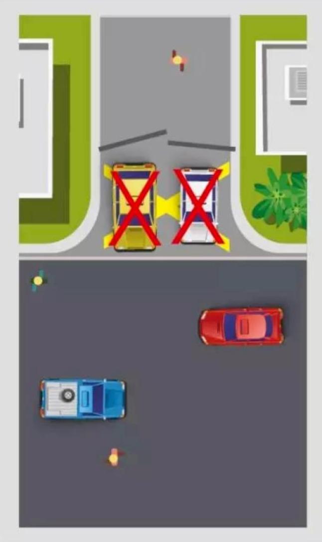 把车停在十字路口或丁字路口,容易造成他人转弯空间不足,从而造成刮擦事故。特别容易使右转弯车辆驾驶人的视线被挡住,看不到有人过马路,行人也看不到车辆右转弯,极易引发交通事故。