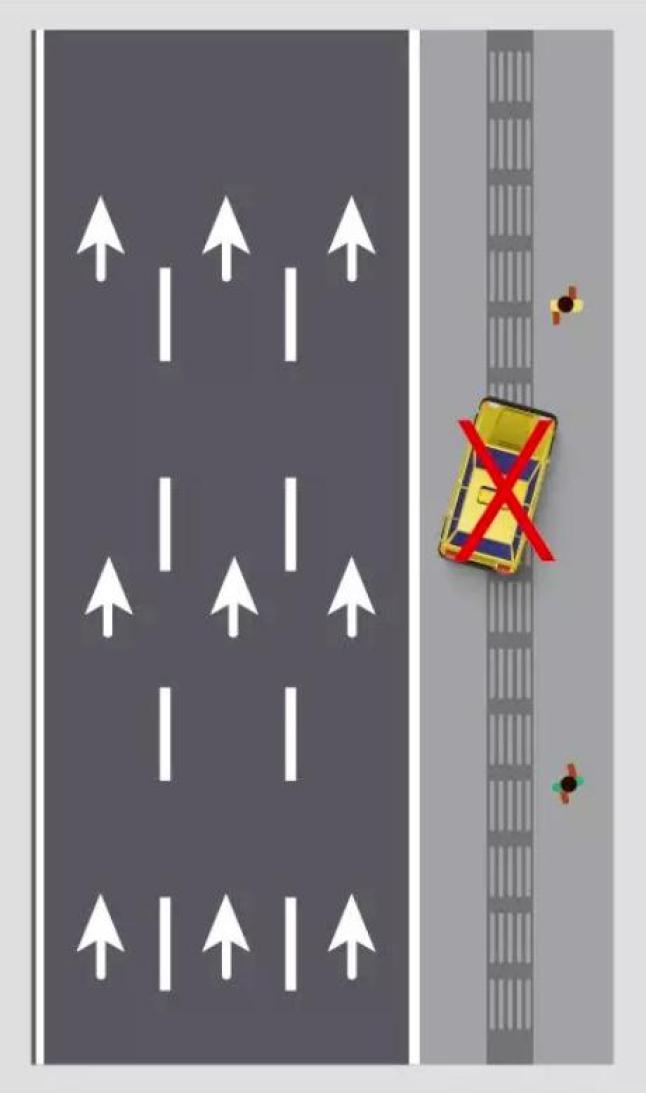 单黄实线施划在道路中间是禁止车辆跨越,而被施划在道路一侧边缘上时,其身份便转变为禁止停车标线。