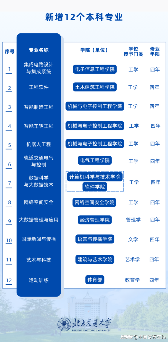 据北京交通大学消息,近日,教育部公布2024年度普通高等学校本科专业备案和审批结果,北京交通大学12个专业成功获批。