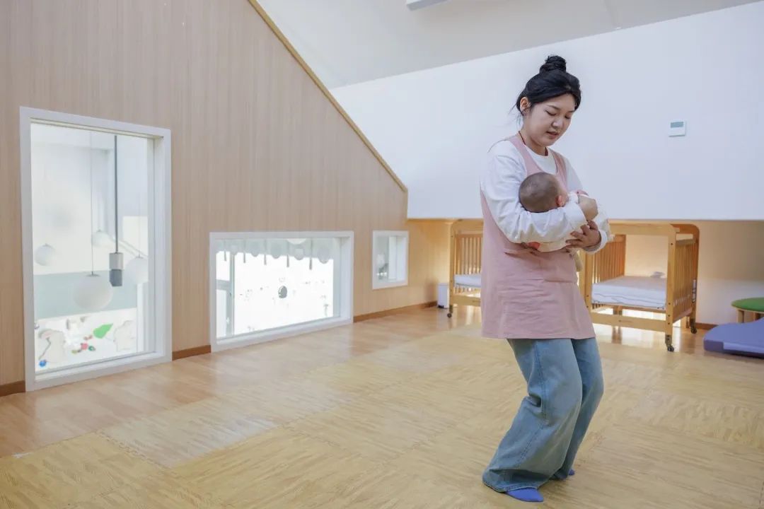 “小月龄宝宝抱在怀里时你能感受到的柔软和温度,以及八九个月的宝宝所展现出的自主意识,是教室里的娃娃模型所不具备的。这里和学校教室最大的不同,就是与孩子们在一起时,他们是‘不容错眼珠’的,得关注宝宝们的一举一动。”